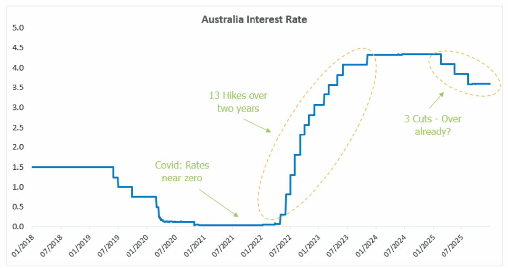 Expansion: Multiple Growth Vectors: We anticipate expansion across multiple fronts. Domestically, economic growth remains robust and resilient, capital expenditure is lifting, the commodity rally shows signs of extending. Globally, the picture is similarly constructive: further Federal Reserve rate cuts are expected, US President Trump’s “One Big Beautiful Bill” should deliver meaningful tax relief, private sector job growth is stabilising, AI capital expenditure continues its steep ascent—with efficiency gains hopefully beginning to materialise—and a tariff détente with China would provide welcome breathing room for global trade.