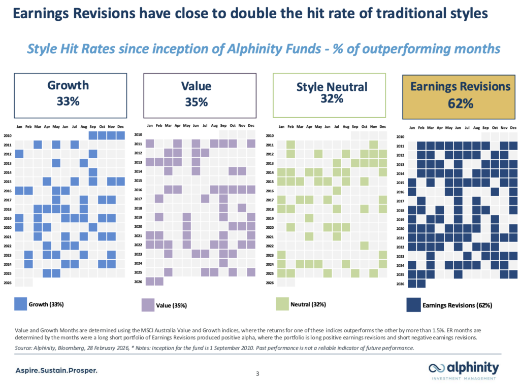 Alphinity’s approach is built on two beliefs. Earnings drive share prices, and positive earnings revisions tend to beget more positive earnings revisions.