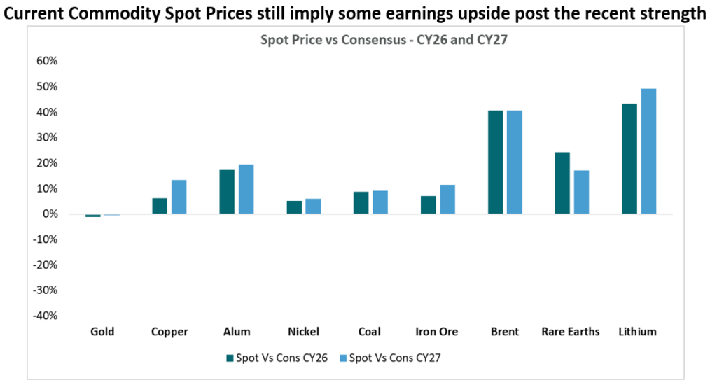 - We retain a modest overweight to Metals and Mining, but well below recent highs and highly selective in where we’re positioned. Where commodity deficits have genuinely widened — aluminium being a clear example, with the supply gap widening materially since January — we see better-supported prices and potential for more earnings upgrades (Newmont, Rio Tinto, BHP, Alcoa).